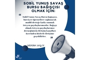 Sobil Yunus Savaş Bursu’nun temini için aynı duygu ve düşünceleri paylaştığımız büyük Sobil Ailesi’nin mezun, mensup ve paydaşlarının değerli katkılarını beklemekteyiz.